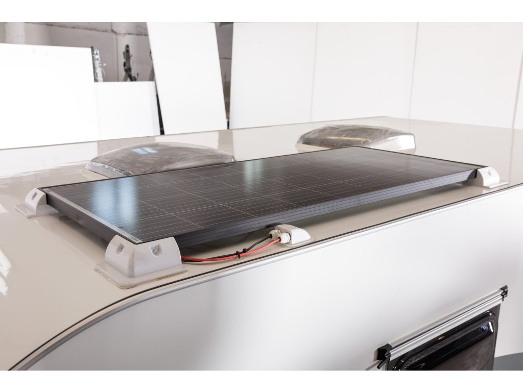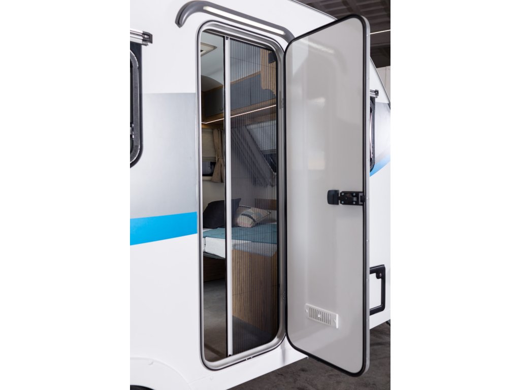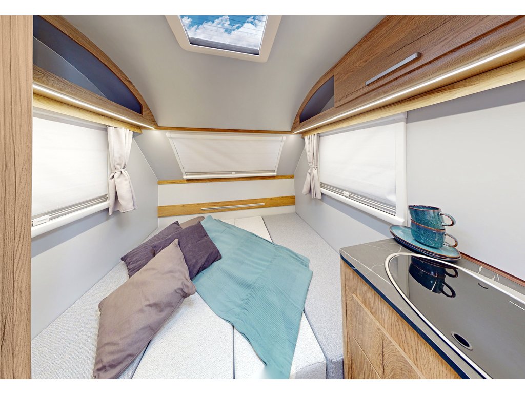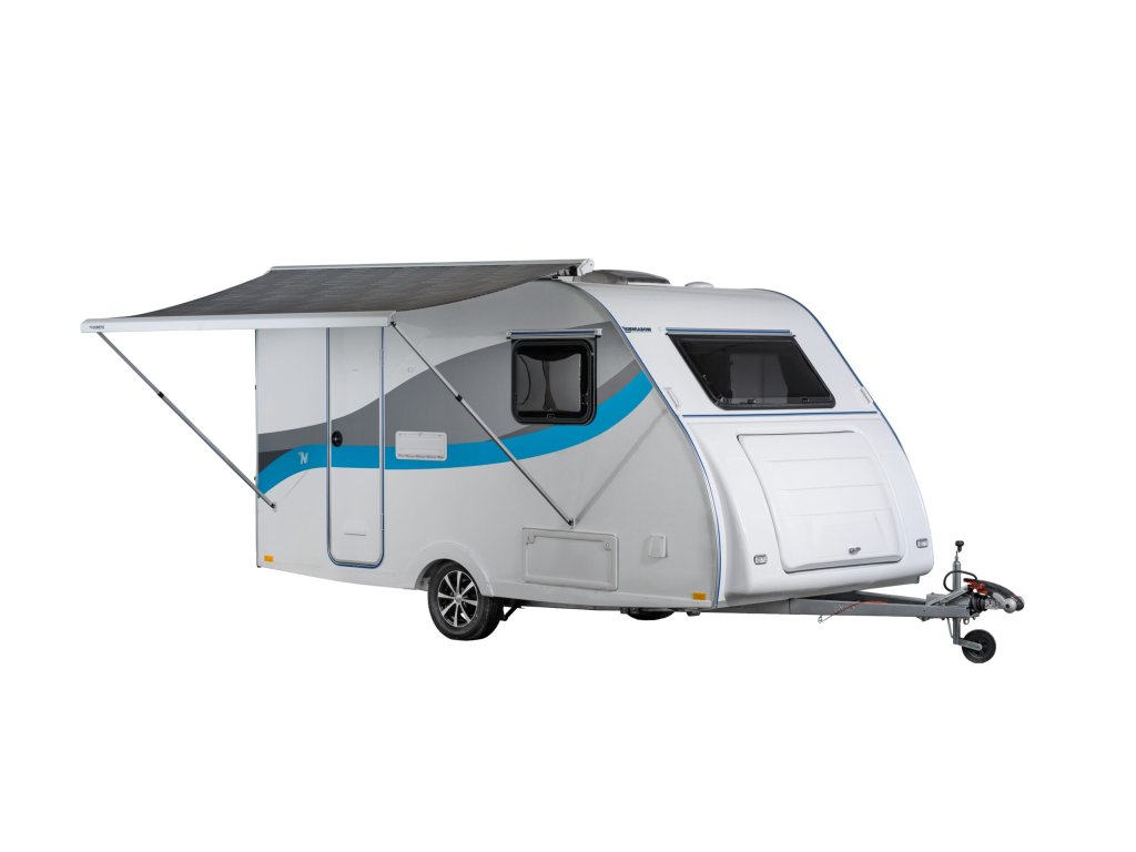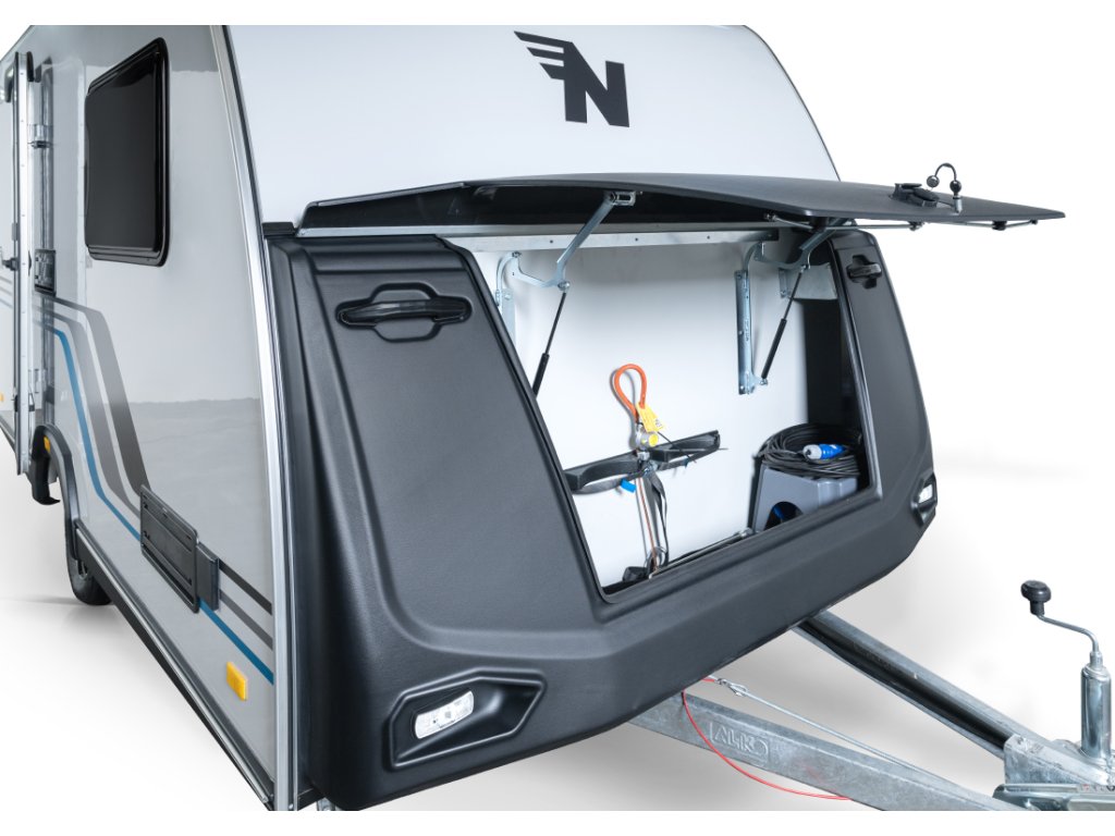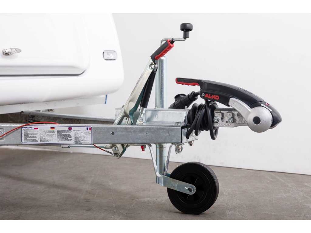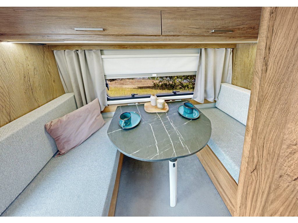 V obývacej izbe je funkčný stôl, ktorý sa dá ľahko premeniť na pohodlnú manželskú posteľ. V zadnej časti je menší stôl, ktorý v prípade potreby môže pôsobiť ako jedno ubytovanie. Pre páry je to vynikajúce riešenie - ponechanie jedného z miest v použiteľnej forme vám dáva ďalší priestor na jedenie alebo prácu bez toho, aby ste museli každý deň zložiť posteľ. Vysoký komfort používania je zabezpečený bohatou štandardnou výbavou. Príves je vybavený kúpeľňou s WC, sprchovacím kútom, elektrickou termálnou vaňou a sprchovacím kútom, ako aj kuchynkou s plynovou kuchyňou, chladničkou a umývadlom – všetko, čo potrebujete pre pohodlné cestovanie a každodenné fungovanie. V najnovších modeloch sme použili moderný, dotykový ovládací panel, ktorý vám umožní intuitívne spravovať všetky hlavné funkcie prívesu. Z jeho úrovne môžete pohodlne ovládať osvetlenie, ovládať hladinu čistej vody v nádrži (30l) alebo skontrolovať stav batérie - to všetko s čistým, moderným rozhraním. Ďalšou výhodou je široká škála ďalších možností vybavenia, vďaka čomu môže každý zákazník prispôsobiť príves svojim individuálnym potrebám a cestovnému štýlu.