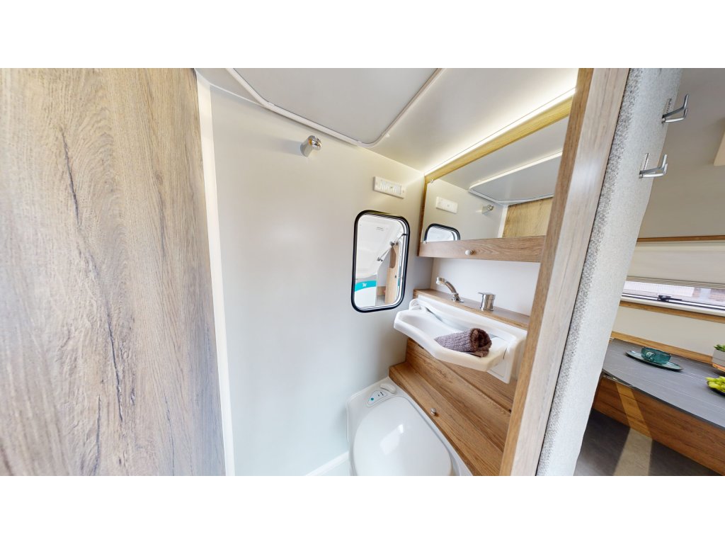 | Toaleta: | Áno – toaletná kazeta, sprchová súprava s horúcou vodou (5 l elektrický kotol Truma TT2) a sprchový kút |