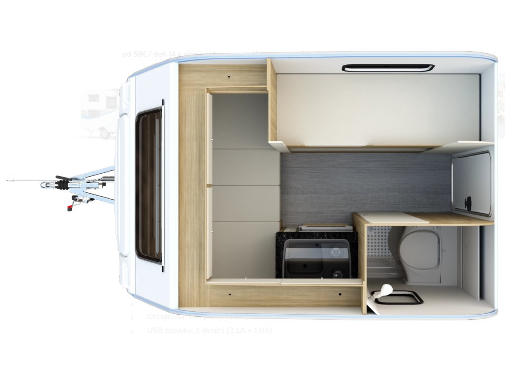 - Toaleta: Áno – kazetová toaleta + sprcha s bojlerom a vaničkou