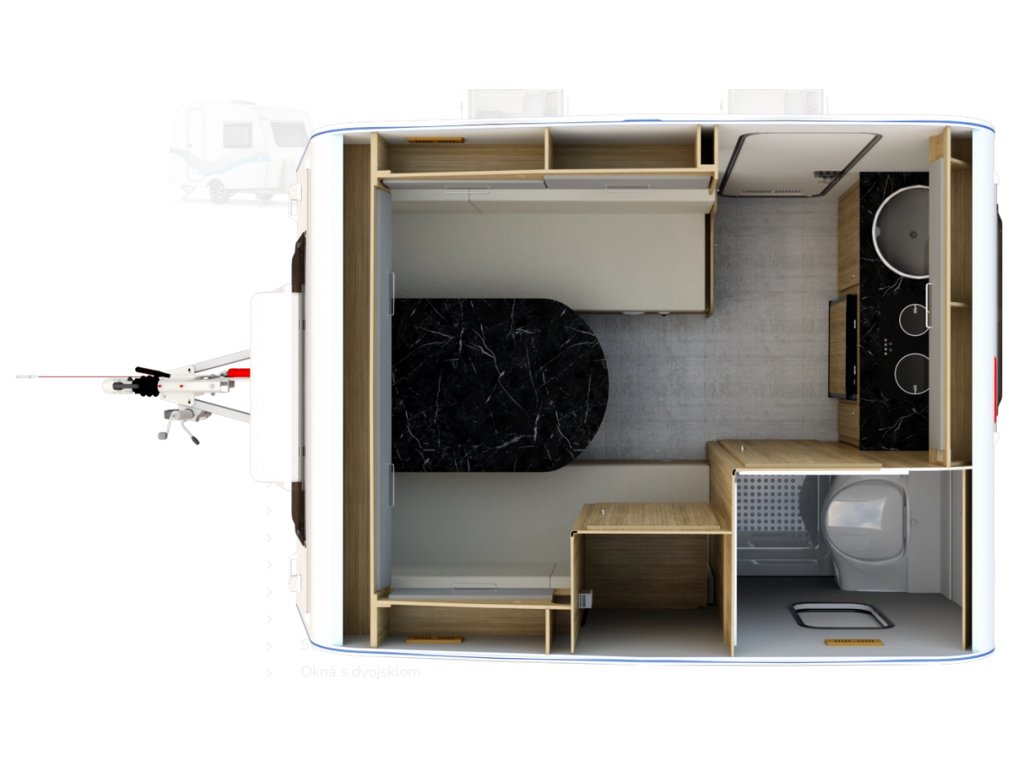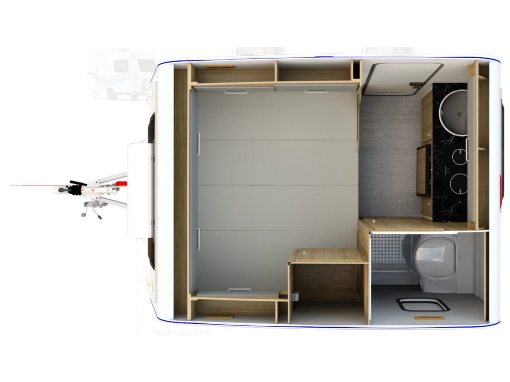 - Kazetová toaleta + sprcha s bojlerom a vaničkou