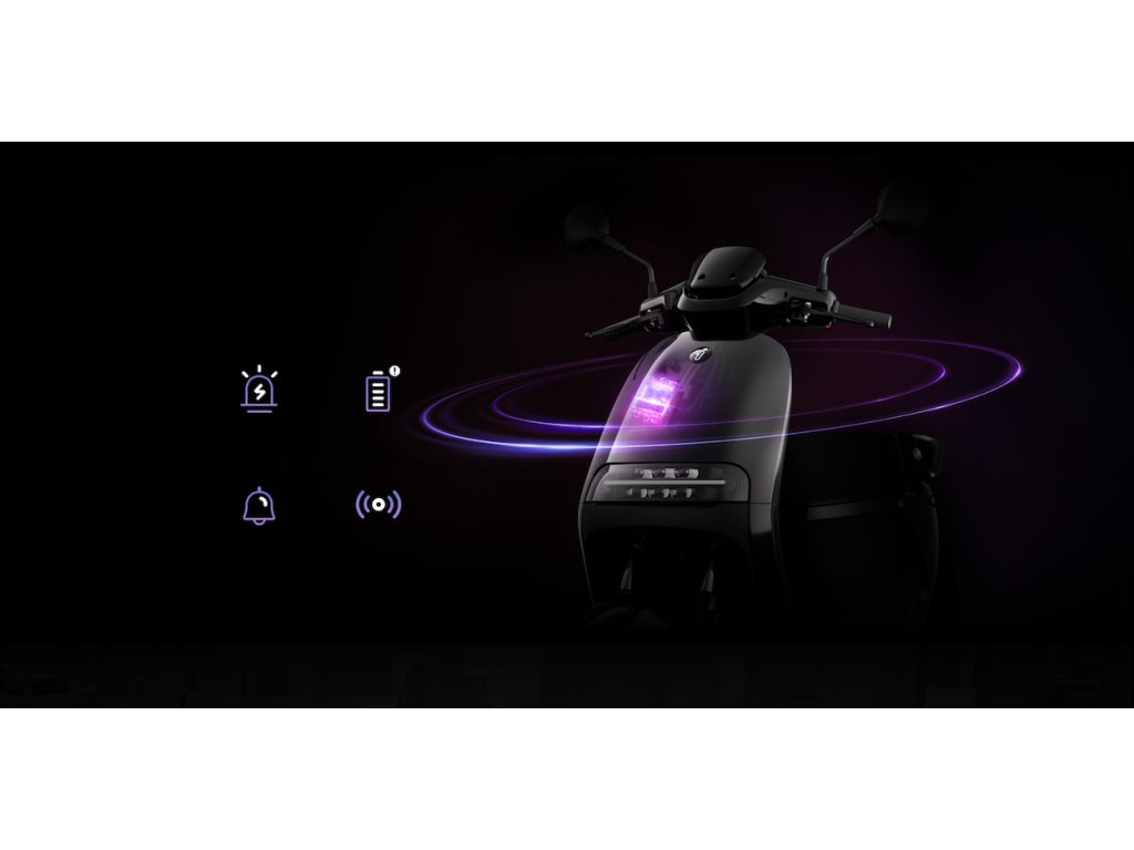 Permanentná mobilná konektivita a príjmač GPS zaisťujú neustály monitoring stavu a polohy skútra. Vďaka pokročilej ochrane proti krádeži máte pokojné spanie. Akonáhle dôjde k podozrivému správaniu, systém okamžite hlasí jeho polohu v aplikácii a aktivuje alarm. Majiteľ má tiež možnosť v prípade odcudzenia diaľkovo vyradiť z prevádzky odcudzený stroj a jeho batériu. Aplikácia vie diaľkovo odomknúť skúter napríklad pre kamarátov a ovládať klaksón aj svetlá, napríklad na veľkom podzemnom parkovisku.